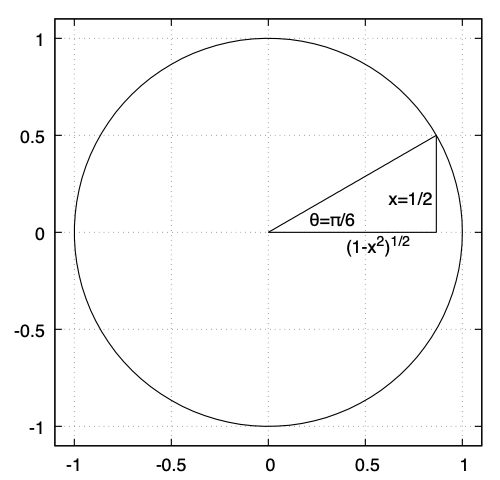 This is a nice way to calculate π. Consider a 30-60-90 triangle in a unit circle. The acute angle, as shown in the diagram, is π/6 radians and its sine is x=1/2. The approximations come from a Maclaurin series for this angle developed around x=0.