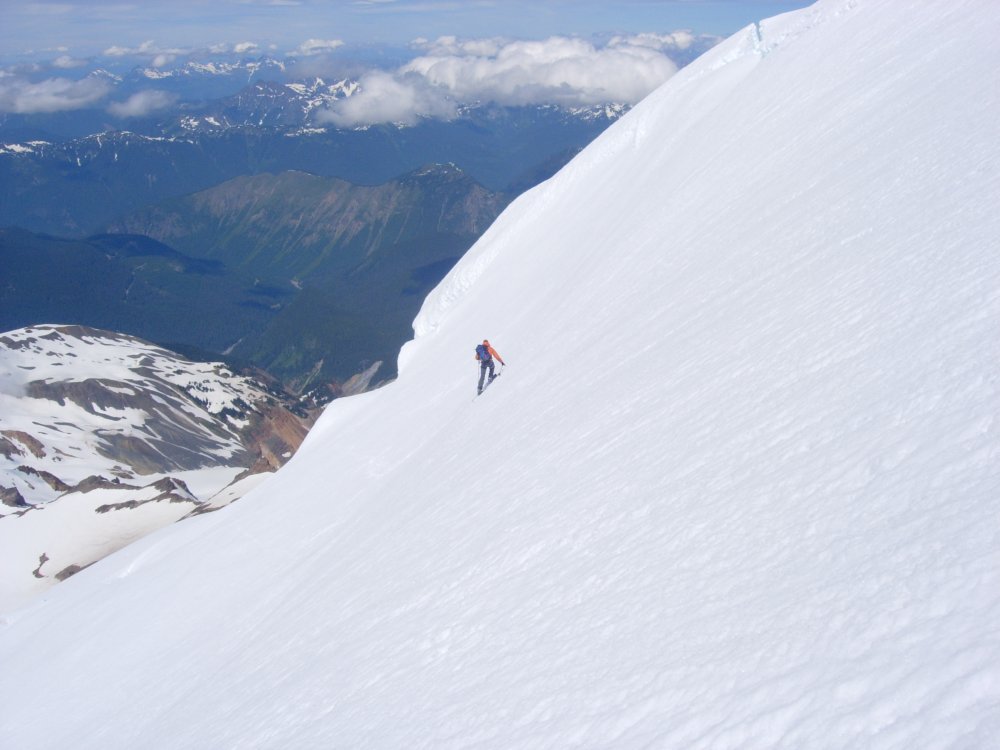 The North Ridge of Mount Baker is one of the more pleasing volcano climbs in Washington. It offers alpine ice without much objective hazard, steep snow above and below the ice cliff, and a tour of the impressive >4 mi2 area of ice comprised by the Coleman and Roosevelt Glaciers.